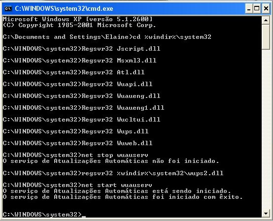 5º) Agora digite “regsvr32 %windir%\system32\wups2.dll” e novamente pressione o Enter.