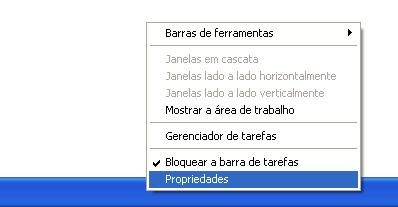 1-Clique com o botão direito na barra de tarefas e abra a opção Propriedades.